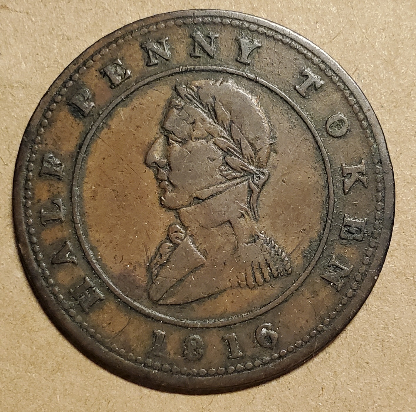 LC-12 Wellington – Montreal 1816 half penny token (#1)